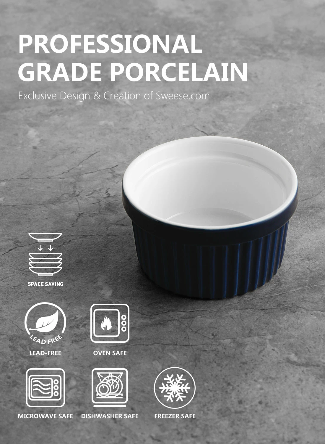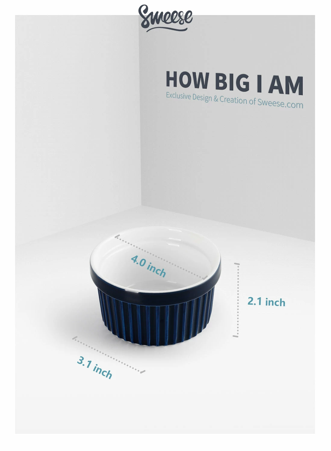 Sweese ramekins with perfectly sized for single-serve desserts. Ideal for serving individual souffle, creme brulee, jams, dipping sauces, french onion soup, blueberry crumble, drawn butter, olives, quiche, and ice cream. Classic contours with a red color design add a stylistic touch and brighten up your mornings.