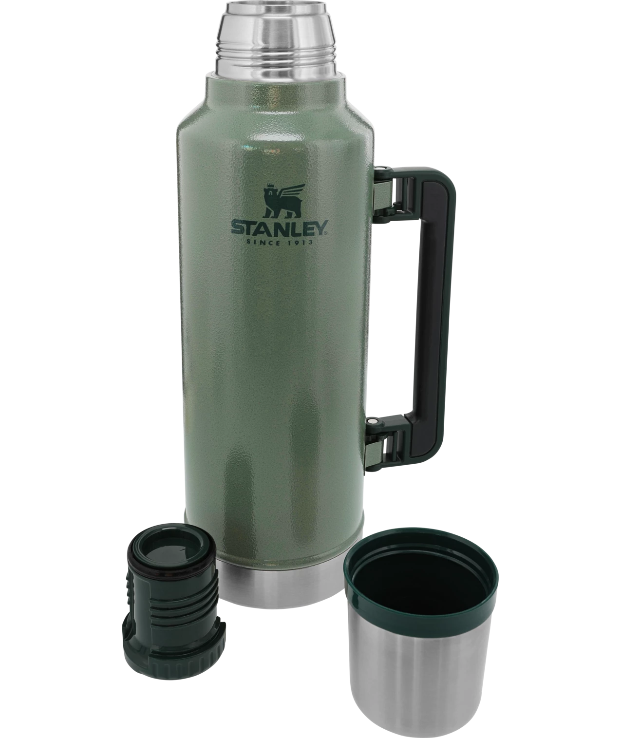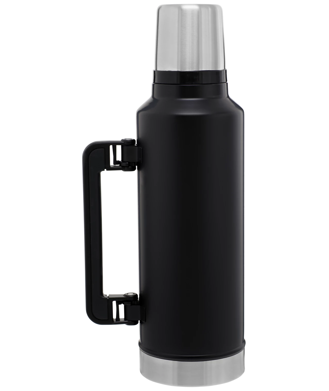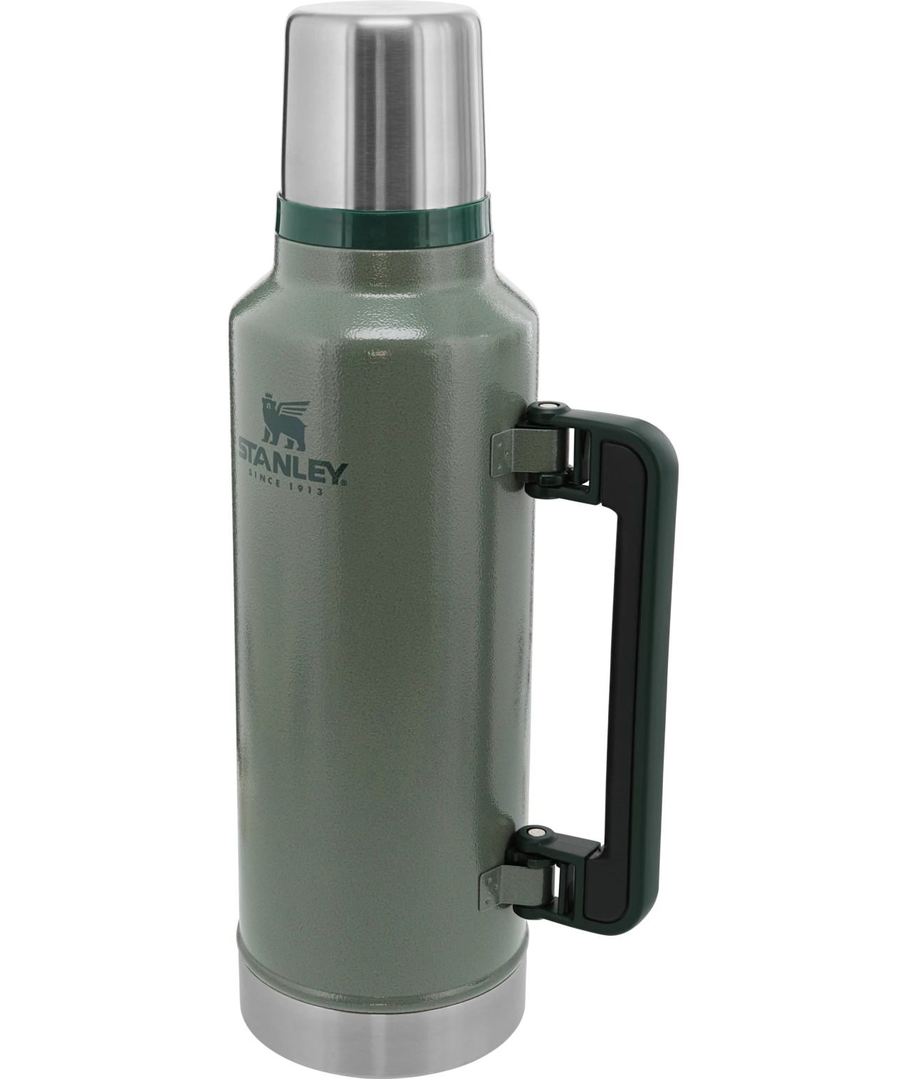 This bottle is built big for all your big adventures. Stanleyβs signature vacuum insulation will keep your coffee hot and your iced drinks cold for up to 2 days. The folding handle allows you to take it anywhere (and prevents it from rolling around in the back of your truck bed, boat or trailer). Itβs also leakproof, packable and easy-to-pour which makes it a welcome companion at any tailgate or camp out.